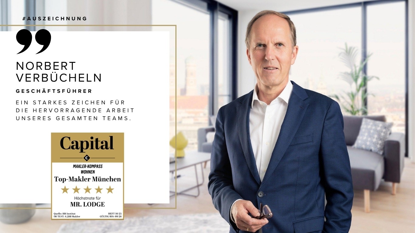 Mr. Lodge was once again named one of the best real estate agents in Germany in the Capital Estate Agent Compass 2024. With the highest rating of five stars, the Munich-based company is one of the leading providers in the field of residential real estate and furnished temporary living. Based on an independent test, Mr. Lodge offers first-class real estate brokerage and excellent customer service.