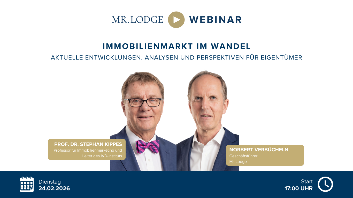 In our next live webinar, real estate market expert Prof. Dr. Stephan Kippes and our Managing Director Norbert Verbücheln will jointly classify current developments, shed light on the background and show what they mean for owners.