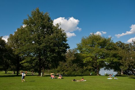 Lakeside promenade, swimming areas, library, landmarks (e.g. archaeological park, spa gardens castle, baroque church St. Martin)