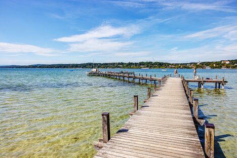 Starnberg is located approx. 27 km southwest of Munich (city center). The history of the town of Starnberg, on the northern shore of the correspondent lake, began in the 13th century and was mainly centered around Starnberg Castle. Lake Starnberg also achieved tragic fame as the site of the mysterious death of Ludwig II of Bavaria: A beautiful votive chapel on the lakeshore now serves as a reminder of the popular King.