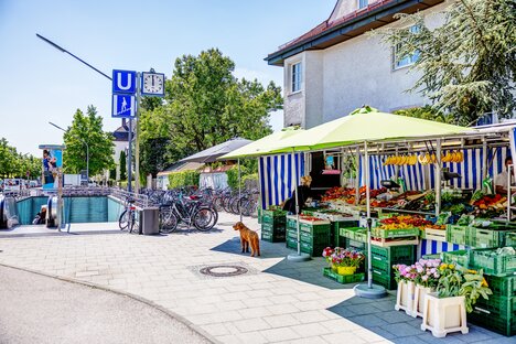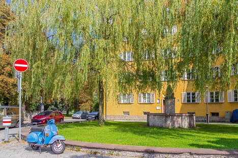 Stores, doctors and a post office can also be found in the buildings arranged around quiet green courtyards. A large number of garages and parking spaces are available for residents. The location is relatively quiet and very conveniently situated between the two beautiful local recreation areas, the Nymphenburg Palace Park and the Olympic Park. There are also numerous stores for daily needs and several restaurants in the immediate vicinity. Borstei is also very well connected to public transport: the Westfriedhof stop on the U1/U2 underground line is just a few minutes' walk away.