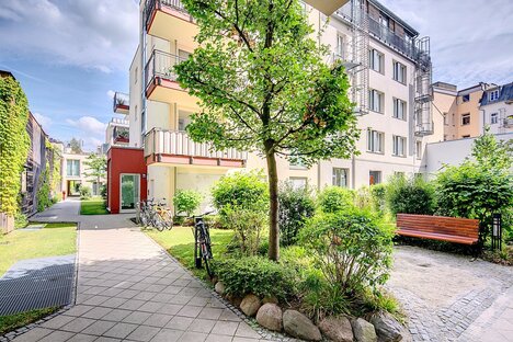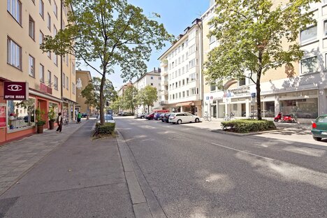 In contrast to the otherwise very densely built-up Maxvorstadt, a spacious square has been kept free in front of the church, where the Franziskusbrunnen fountain and a small children's playground are located. The residential area offers many beautiful properties and benefits from its central location: all stores for daily needs and many restaurants can be found in the immediate vicinity. In addition, the nearby Maßmannpark is a beautiful, albeit small, green space on the doorstep. The equally nearby Nordbad offers more space for sporting activities. Although the parking situation in Maxvorstadt is very difficult, residents of Josephsplatz have had the privilege of their own underground parking garage for several years now, which significantly eases the situation. Josephsplatz itself is located right next to the subway station of the same name on the U2 line, which provides a quick and easy connection to the city center.