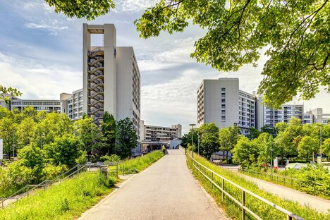 The district is home to the Augustinum Clinic Munich and the Stiftsbogen residential complex of the Munich Student Union. Neuhadern is mainly home to large apartment buildings with green spaces. To the south are some older detached houses with gardens. The proximity to nature and the quiet location are the greatest advantages of the Neuhadern residential area.