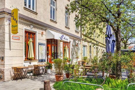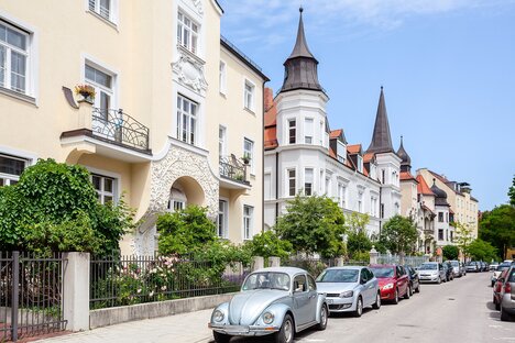 In this upscale part of Nymphenburg, which is crossed by the two palace canals, there are mainly detached and terraced houses and some villas surrounded by gardens. The Gern villa colony, which is home to a large number of Wilhelminian-style villas, stands out in particular. It was mainly artists who settled here at the end of the 19th century, a fact that can still be seen in the street names in this district today.