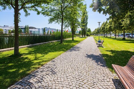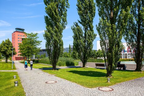 The small town of Riem has gained a lot of residential quality since the airport moved away. The large New Trade Fair City site was built on the old airport site. Since its completion, it has been the venue for numerous national and international trade fairs. The former airport site is now a prime example of sustainable urban planning and has become an attractive residential area, especially for families. The numerous residential units in the south of the exhibition grounds are home to over 10,000 residents from 111 nations and give Riem, which is otherwise rather close to nature and quiet, a cosmopolitan flair.