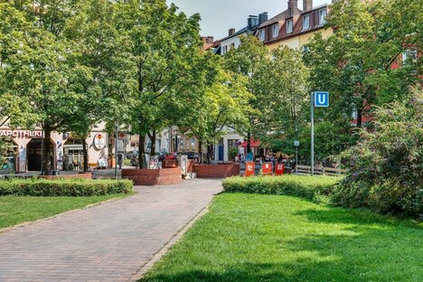 Untersendling, originally an independent village, is now part of the Sendling district. There are many small stores along Waldfriedhofstraße and further to the north-east is Hansapark, Untersendling's commercial area. But there are also plenty of smaller and larger green spaces to discover: The Stemmerwiese, which belonged to a large farm until the 1960s, is now used as a recreational area by local residents. In addition, the Flaucheranlagen, one of the most popular local recreation areas on the Isar, can also be reached very quickly on foot, as can the extensive Westpark.