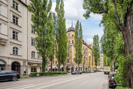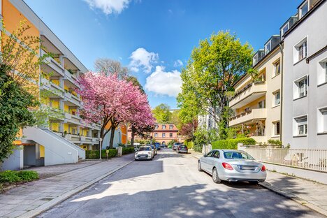 In this part of town, there are mainly detached and semi-detached houses with gardens, but also some larger residential buildings with beautiful properties. The location is very quiet and also green. With Partnachplatz and Harras, there are two subway stations on the U6 line in the immediate vicinity. This means that the center and the outskirts can be reached in just a few minutes. Harras is also a stop on the S7 S-Bahn line and a bus hub, so the public transport connections are excellent.