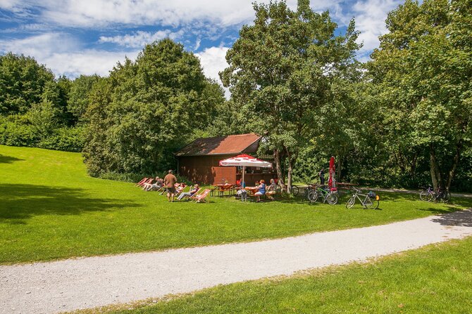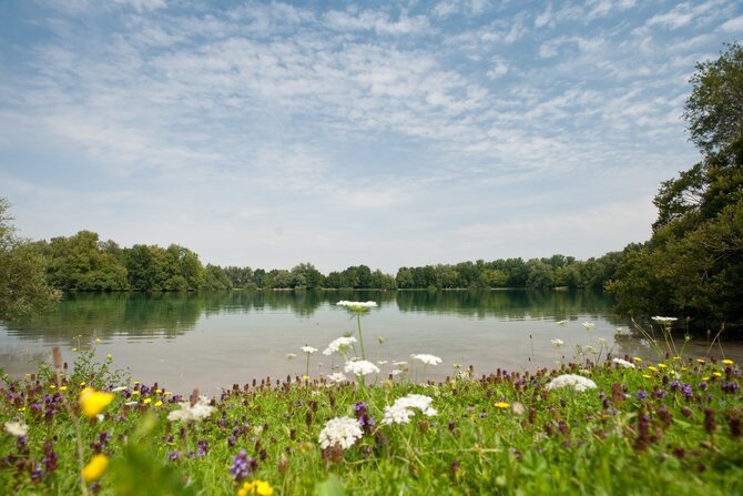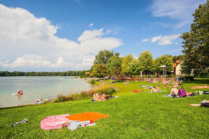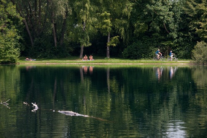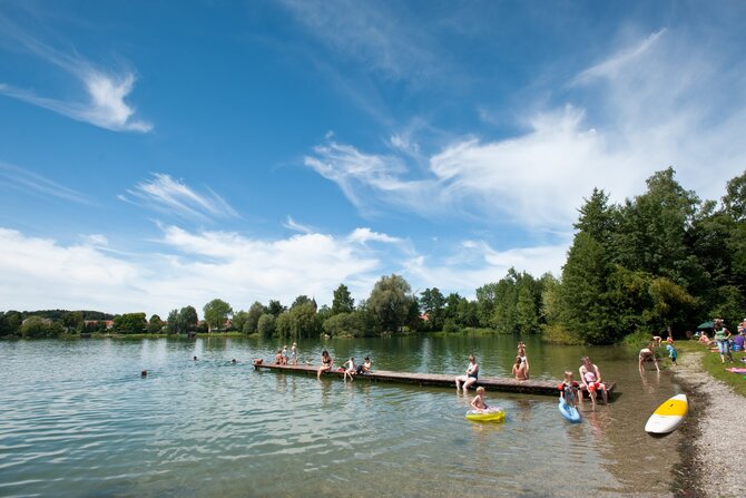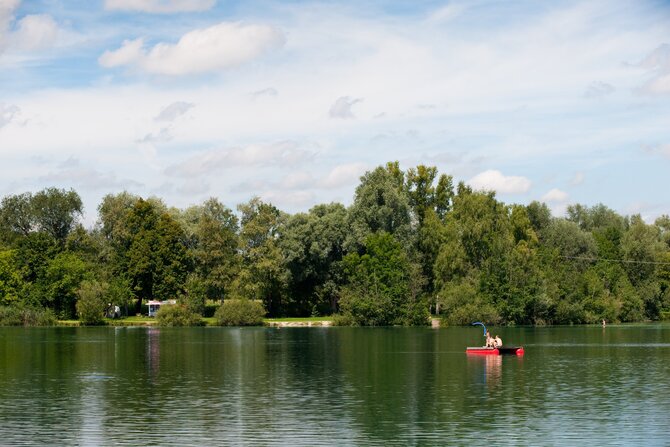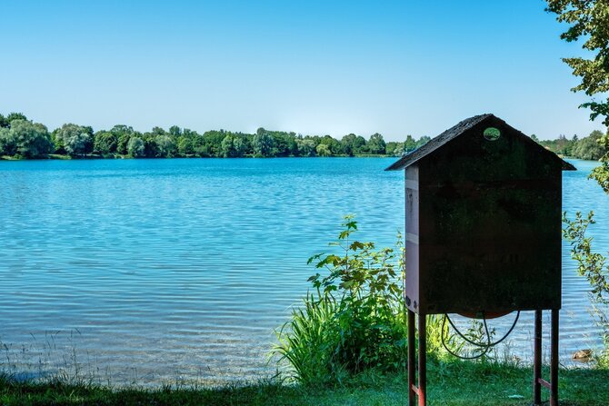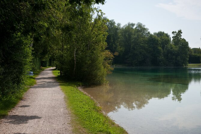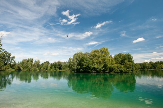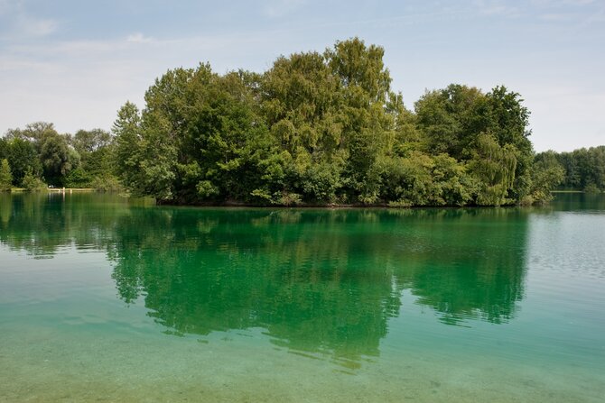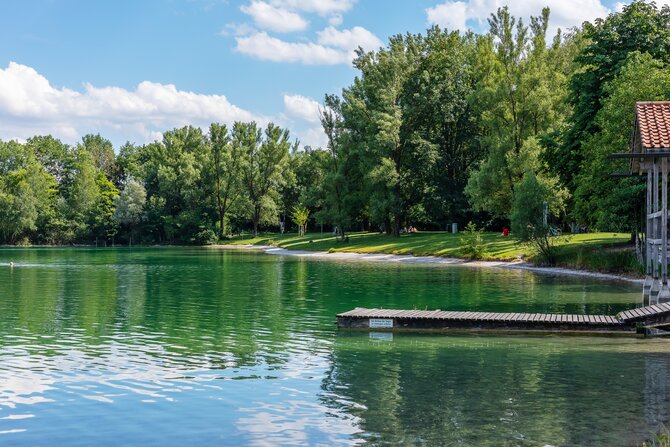 This idyllic and seldom overrun lake is located in the Dachauer Moos. In addition to the natural flora and fauna, this 11-hectares (30 acres) lake offers a floating wooden dock, as well as a natural island in the middle of the lake. The island can only be viewed from a distance however, as it is a conservation area.