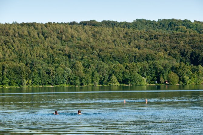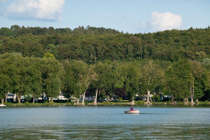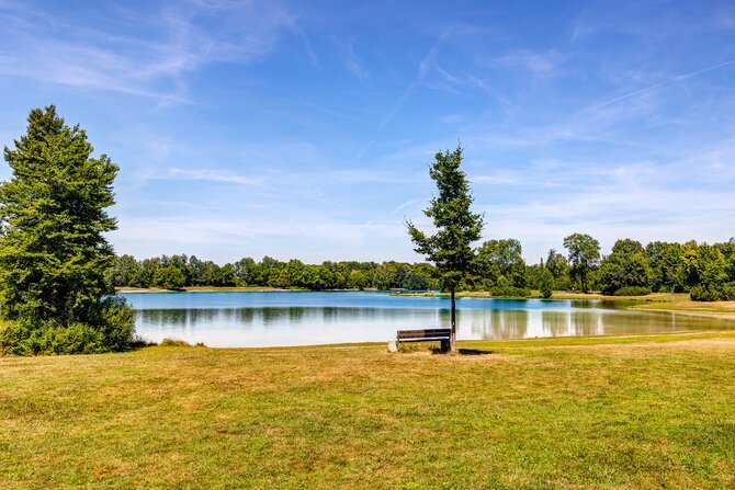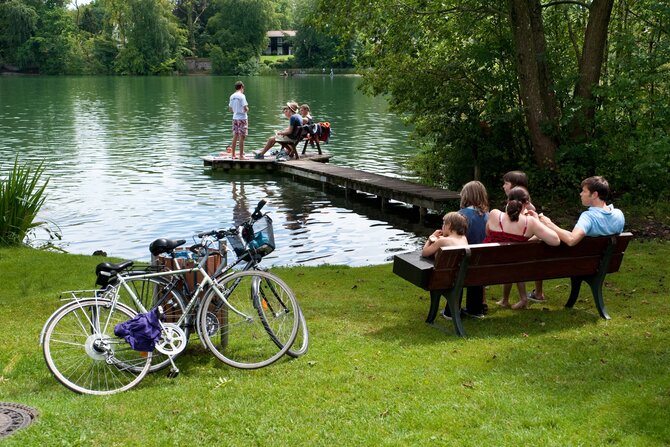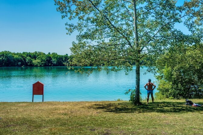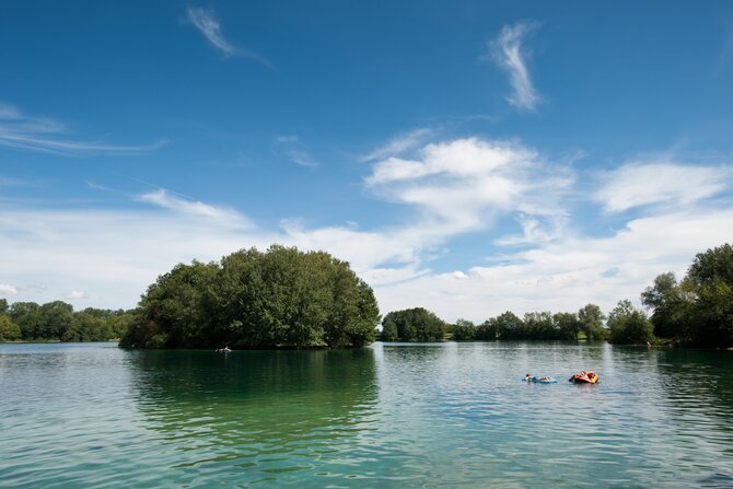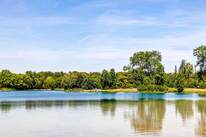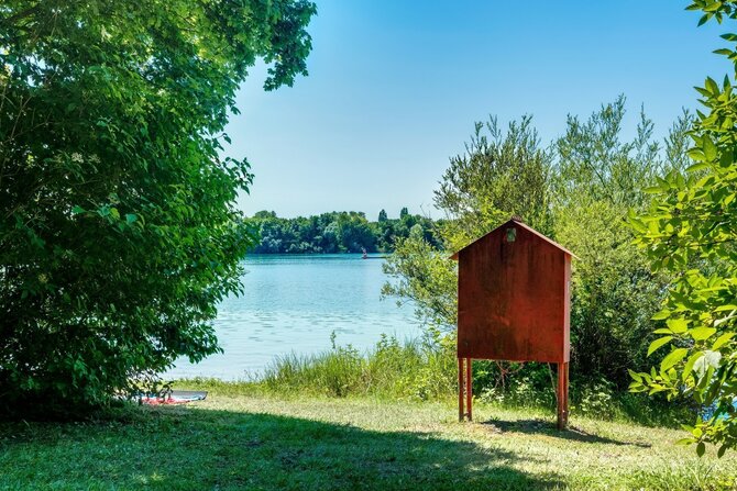 An ideal meeting place for families and non-swimmers. A shady path running around the shores of the lake attracts cyclists and joggers. The man-made shallow areas in the lake are popular with children and water-sport players. Despite its amenities, it is only little frequented.