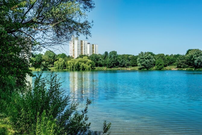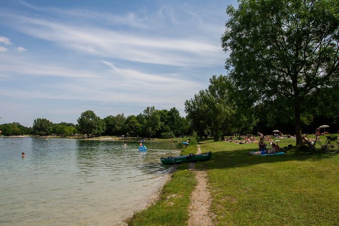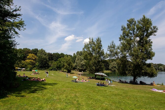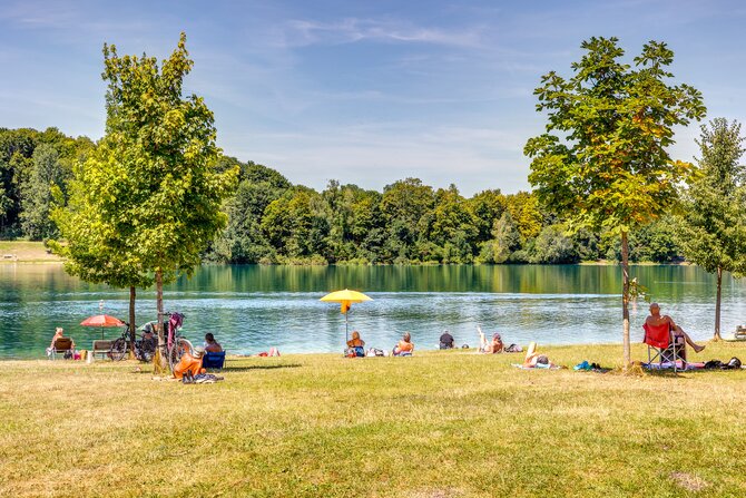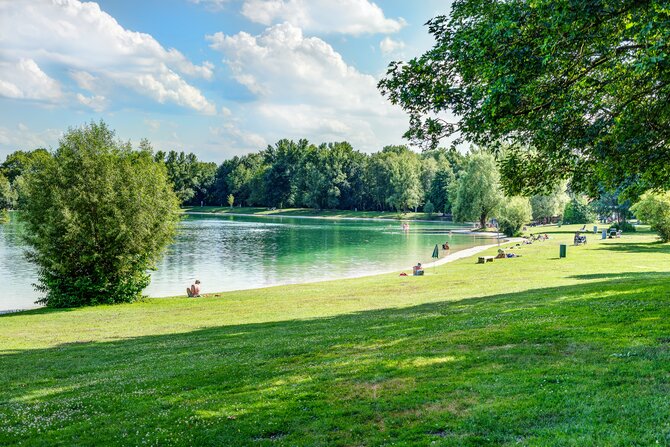 Lerchenauer See is one of the smallest and oldest bathing lakes in the north of Munich and combines recreation with big-city flair, as it is surrounded by high-rises. It is 7.9 hectares in size and up to eight meters deep. There are designated barbecue areas. Since there are only very few parking spaces, it is recommended to use public transportation (bus line 60, S-Bahn station Fasanerie).