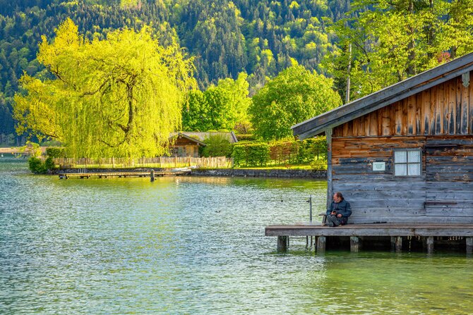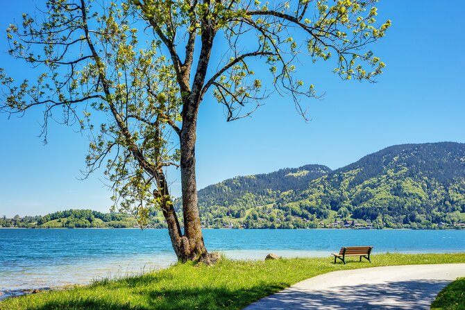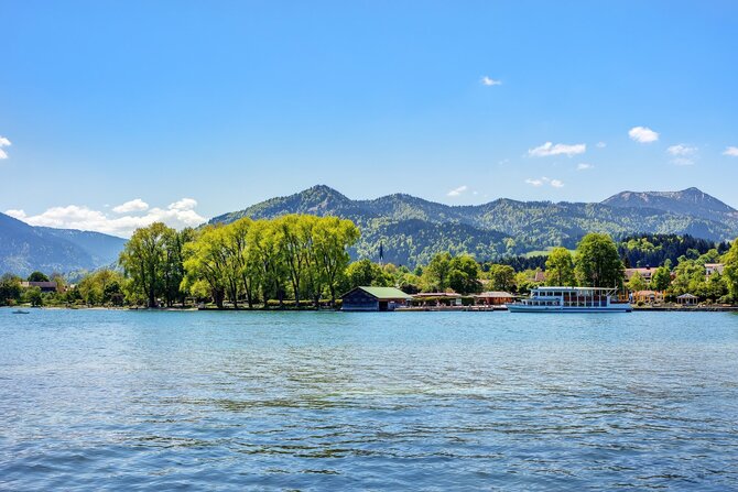 Lake Tegernsee at the Bavarian foothills of the Alps has a length of six kilometers and a maximum width of one and a half kilometers. Like most Bavarian lakes, it was formed after the last ice age. The diverse landscape, the tranquil atmosphere of the Alpine countryside and the touristically developed villages around the lake have made it a popular recreation area for domestic and foreign visitors. Very attractive are the numerous mineral springs, the renowned health resorts, but also the large selection of cafes, restaurants, as well as the cablecar Wallbergbahn and the casino Bad Wiessee.