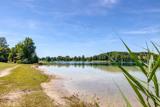 The shores of this lake are adorned by small hills, a well signposted nudist area, and a wheelchair-friendly area of 2500 m², with a lift and movable pier to enable wheelchair-users to bathe easily. There is a conservation area for nesting birds at the southern end of the lake.