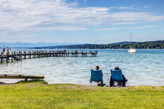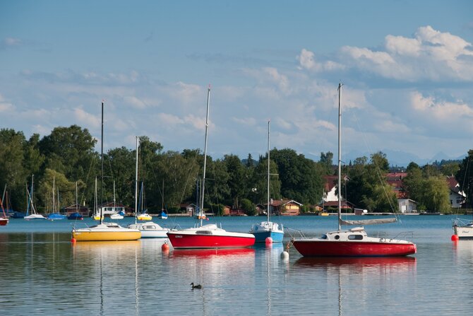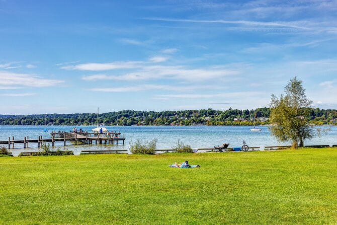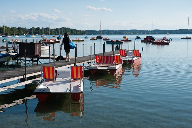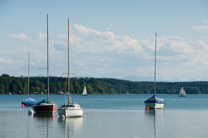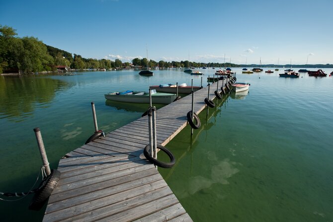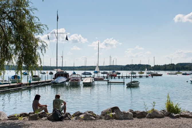 Wörthsee lies protected in a morainic landscape marked by woods, fields, and hills. It is, after Starnberger See and Ammersee, the third largest lake of the upper Bavarian Five-Lakes-Country and is surrounded by beautiful villas and wonderful restaurants. A long bike tour through the picturesque Five-Lakes-Country is very inviting, especially since Pilsensee, Weßlinger See, and Ammersee are so close together. Steinebach, on the north-eastern shore, is one of the most visited villages on Wörthsee, charming visitors not only with its four beautiful bathing areas, but also with its renowned restaurants.