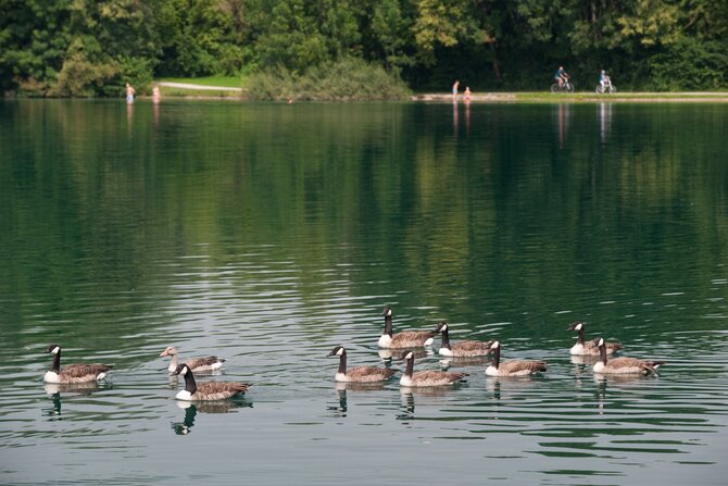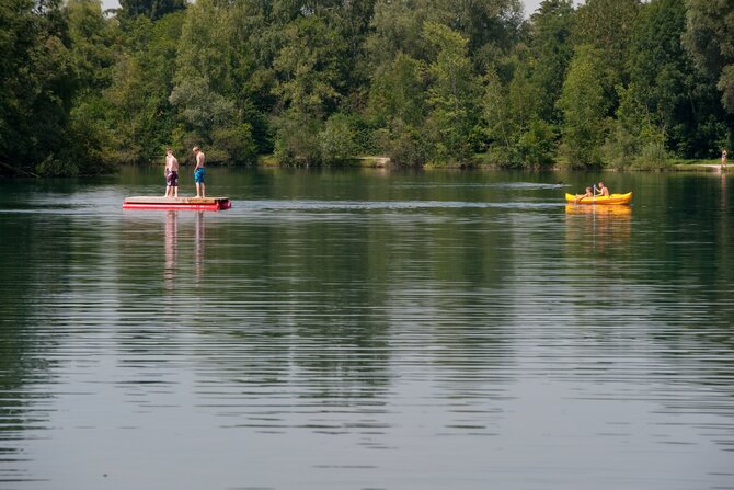 There is a wide range of recreational activities on offer around this 25 hectares (68.5 acres) lake. In addition to two beach volleyball courts, there is a soccer field, three summer curling rinks, playgrounds, tabletennis, and much more. The lake's impressive size means that despite the large number of visitors - often up to 20,000 - there is still plenty of room to sunbathe or sail about in rubber boats.
