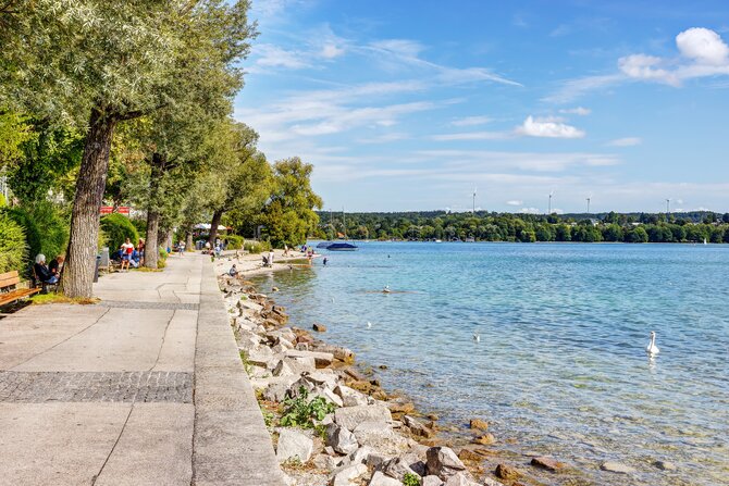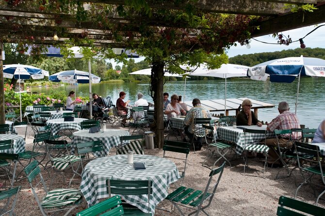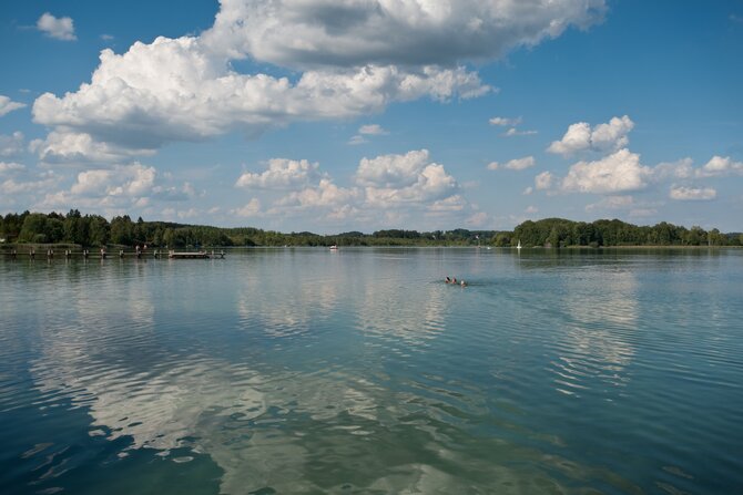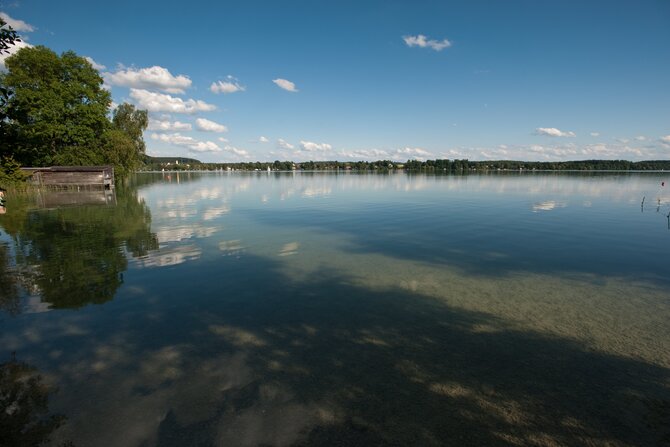 With an area of only 17 hectares, it is the smallest lake of the Starnberger Five-Lakes Region. It is located in the surrounding area of Munich between Weßling and Oberpfaffenhofen. With its many trees, as well as picturesque boathouses, cafes and beer gardens, it is worth a trip all year round. It takes one hour to walk around the lake. In winter, ice skating is also possible. The water fountain, which rises from the lake in the middle, ensures the oxygen content and thus the water quality of the lake, by means of deep-water aeration, as the lake has no tributaries.