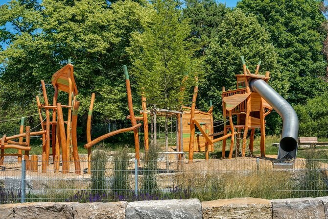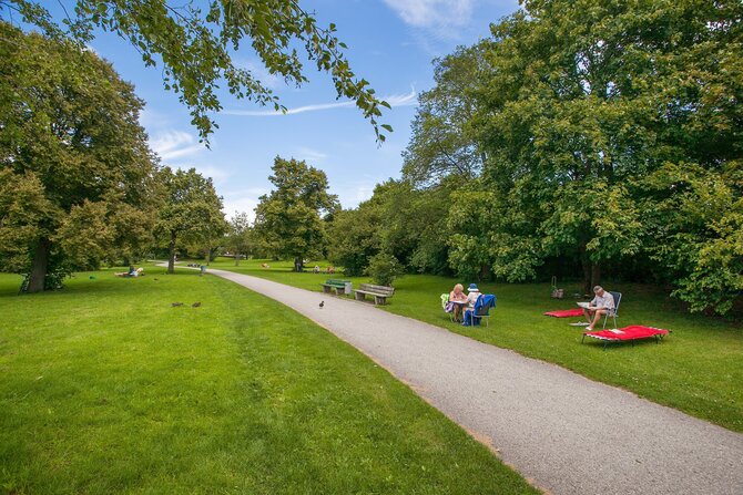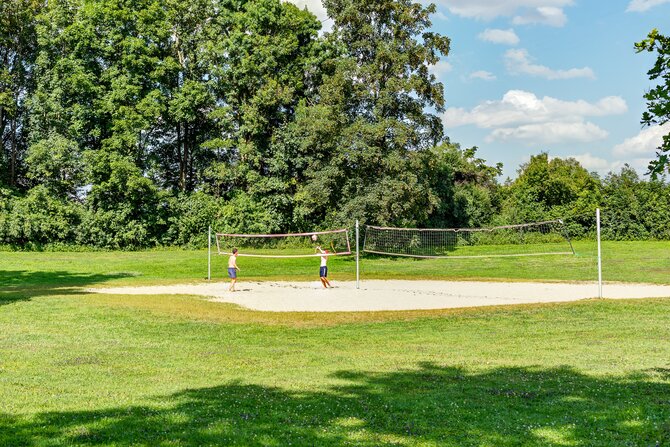 18 hectares (49 acres) grass for sunbathing, soccer field, two beach volleyball fields, three summer curling rinks, 24 tabletennis tables, several playgrounds, an adventure playground, restaurant and kiosk