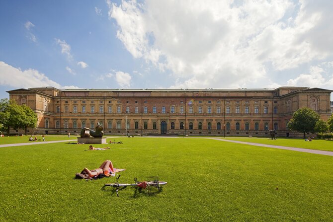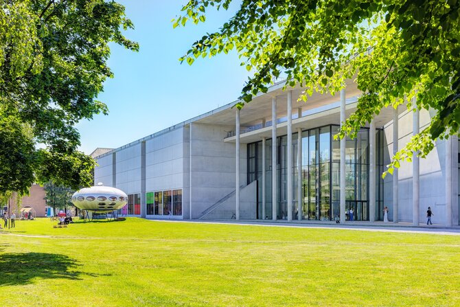 The Pinakothek of Modern Art is located on the grounds of the old Türkenkaserne. The new building fits into Munich's unique museum district, alongside the Alte and Neue Pinakothek across the road, the Lenbachhaus, the Glyptothek, and the Antikensammlung. The impressive, open architecture puts the works on display in a way that emphasizes both their individuality and their relationship to each other. The museum shows the development of the fine arts in the 20th and 21st century and is a center of modern art of international standard. The exhibition space is divided into four sections: art, graphic art, design, and architecture. Visitors are presented with a unique overview of modern art, in all its variety, of the highest level. Refreshments are available in the Museum's Café-Bar 48|8.