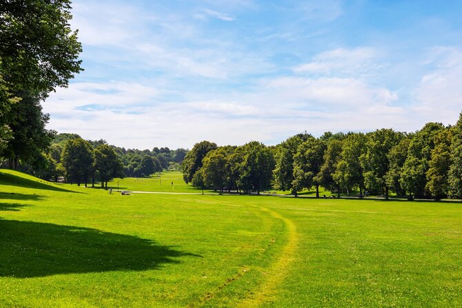 In 1911, the citizens of Munich gave this park to the Prince Regent Luitpold for his 90th birthday. The 33-hectare park, with its many linden trees, is defined by the Luitpold hill - previously a mountain of rubble. Refreshments are available for visitors at the Bamberger Haus.