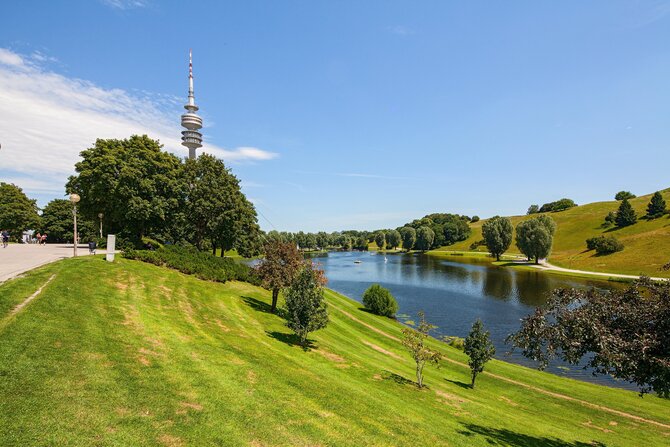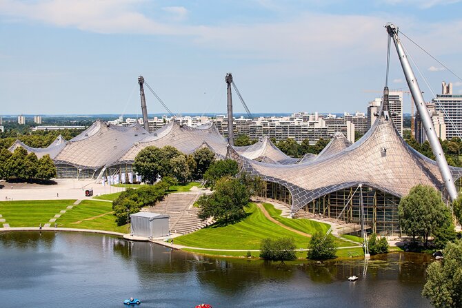 The 3 km² Olympic park was built for the Olympic Summer Games in 1972, on a former military drill ground called "Oberwiesenfeld" that had also been used as Munich's first civil airport. Over a four year period, thousands of craftsmen worked to turn the rubble left by the second world war into an attractive, hilly landscape with an artificial lake, paths, and impressive buildings. The idea that the area should also be usable after the Olympic games, was well-implemented. You can do a lot more than just take long walks in the Olympic park - rowing boats on the Olympic lake, concerts, sport events, conventions and balls in the Olympic hall, roller- and ice skating, free climbing, and the beautiful indoor pools make the park a popular recreation area.