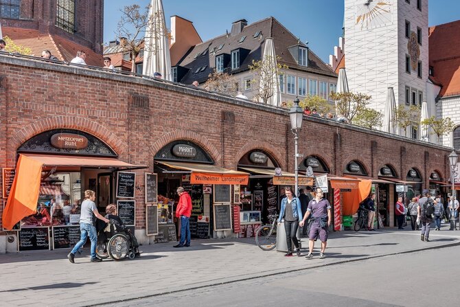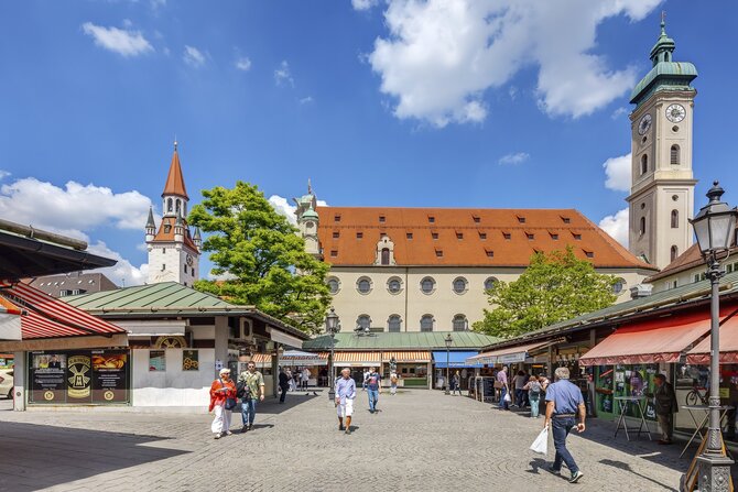 In 1807 King Maximilian I moved the food market from Marienplatz, which had become too small, to the area between the Heilig-Geist-Kirche (Holy Ghost Church) and Frauenstraße. The marketplace was rebuilt after being badly damaged during the war. Gourmets can find a feast for the senses here every morning, with a wide selection of high-quality delicacies from all over the world. Whether it's meat, fish, cheese, honey, flowers, or organic fruit and vegetables, Viktualienmarkt has it all. Under the maypole, in the shade of the chestnut trees, there are cozy beer gardens, cafés and stalls where you can enjoy local delicacies such as Obazda (Bavarian cheese spread), Weißwürste (Bavarian white sausages) and Hendl (broiled chicken).