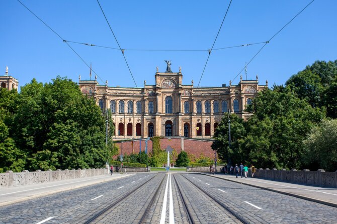 The Swiss architect Hauberisser built the monumental, neo-Gothic brick building between 1867 and 1908 with 6 inner courtyards. The interior of the building is just as magnificent as the facade. The stained glass window depicting the "Patrona Bavariae" (Mary as patron of Munich), the Law Library, and the "Kleine Sitzungssaal" (small council chamber) are well worth visiting.
