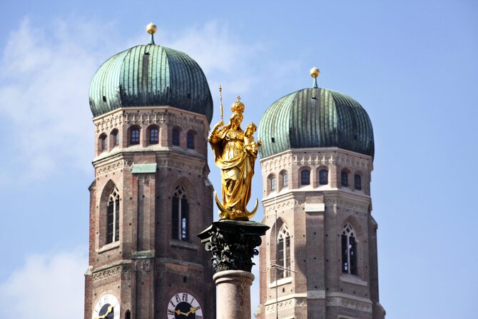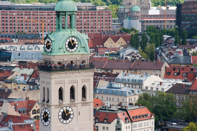 Before the city of Munich was founded, there was already a small chapel on the "Petersbergl" (Peter's hill), which was replaced at the beginning of the 11th century by the romantic style Peterskirche (Peter's church). In the 13th century a new gothic church was built, which was constantly adapted and changed in style over the years. During World War II, the church was so badly damaged that the repair work lasted until 1975. The Renaissance tower "Alter Peter" (Old Peter) is, along with the towers of the "Frauenkirche" (Munich Cathedral) considered a Munich landmark. 302 wooden steps need to be climbed to reach the viewing platform and enjoy a wonderful view over Munich. This legendary church is home to many art treasures from various eras, such as the gothic altar by Schrenk, the baroque baptismal font by Kumpur, or the roccoco side altars by Ignatz Günther.