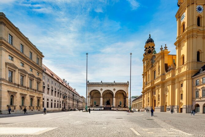 This majestic square is located at one end of the splendid Ludwigstraße, built in 1816 by Leo von Klenze on the orders of King Ludwig I, as the "Street of the Sciences". The square, in which Hitler's putsch failed in 1923, is surrounded by important buildings in various styles; the Feldherrnhalle (Field Marshals' hall), the Theatinerkirche (Theatiner church), the Residenz (Munich Residence), the Odeon and the Leuchtenberg-Palais. The equestrian statue for Ludwig I was erected in 1848, after his abdication due to of the Lola-Montez-Affair.
