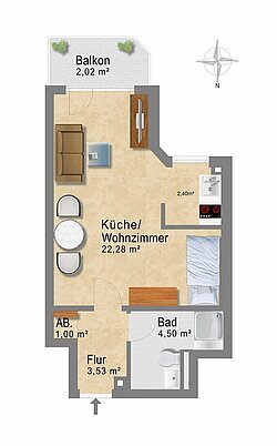 This quiet 1-room apartment with approx. 38sqm of floorspace and balcony in the popular