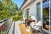 From the living room with dining area you can access the sunny south-facing balcony - here you can enjoy the summer. The view goes into the greenery - into the beautiful, overgrown neighboring gardens.