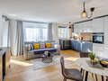 The spacious living and dining area forms the heart of the apartment and opens onto the loggia - a sheltered outdoor space that pleasantly extends the living area and offers a retreat at any time of day. The modern fitted kitchen is functionally integrated and supports the clear, contemporary living concept.