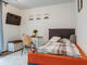 small double bed, sideboard, dining table with 2 chairs, wardrobe in the hallway