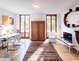 sofa bed, dining set, rustic cupboard, armchair, shelf, wardrobe in the hallway