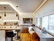 kitchen open to the living area, with window, refrigerator with freezer compartment, dishwasher, induction stove, electric oven, extractor hood, coffee machine, dining set, dinnerware, kitchen utensils and equipment provided