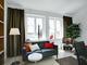leather sofa, single bed (120 x 200 cm), dining table with 3 chairs, shelves, wardrobe