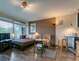 kitchen partly open to the living area, refrigerator with freezer compartment, electric oven, extractor hood, 4 hotplates, kettle, toaster, coffee pad machine, dinnerware, kitchen utensils and equipment provided
