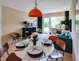 Like new kitchen open to the living area, refrigerator with freezer compartment, dishwasher, induction stove, microwave, dinnerware, kitchen utensils and equipment provided