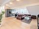 The heart of the apartment is the spacious living area with a dining area and open-plan designer kitchen by Nolte. The fitted kitchen is very well equipped, e.g. with a natural stone worktop, a Bora hob with a modern extractor fan, and a DeLonghi cappuccino machine. The material used for the kitchen countertop is also used for the window sills – a subtle architectural detail that emphasizes the high quality of the apartment. The stylish fireplace ensures cozy evenings during the cold season. The living area opens onto a private loggia facing the quiet inner courtyard. From here, you can enjoy the view over the city.