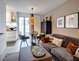 kitchen open to the living area, with window, refrigerator with freezer compartment, ceramic stove top, electric oven, dishwasher, coffee machine, dinnerware, kitchen utensils and equipment provided