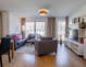 Modern kitchen open to the living area, electric oven, ceramic stove top, fridge-freezer combo, microwave, dishwasher, dinnerware, kitchen utensils and equipment provided