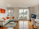 This very bright and quiet 3-room apartment is located in a small, extremely well-maintained complex. The sophisticated furnishings leave nothing to be desired. All rooms are accessible from the L-shaped hallway. The bathroom with double sink, large shower, and bathtub is located next to the bedroom. Spacious living room with cherry wood parquet flooring, smart TV, and Yamaha sound system.