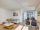 open plan kitchen visually separated from the living room by a breakfast bar, with window, induction stove, extractor hood, electric oven, fridge-freezer combo, dishwasher, microwave, Fully automatic coffee machine, toaster, dinnerware, kitchen utensils and equipment provided
