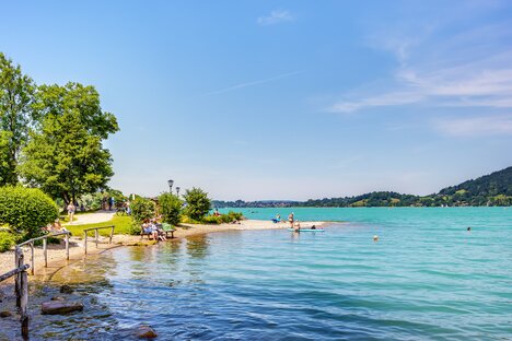 Delicacy mile with a unique density of star and gourmet restaurants, e.g. Restaurant Überfahrt, Dichterstub'n, Kirschner Stuben, Haubentaucher, restaurants with regional and international cuisine such as Fährhütte 14, Il Barcaiolo, bars, distilleries such as the Fischerweber's Edelbrände show distillery and Confiserie Hagn on the lakeshore
